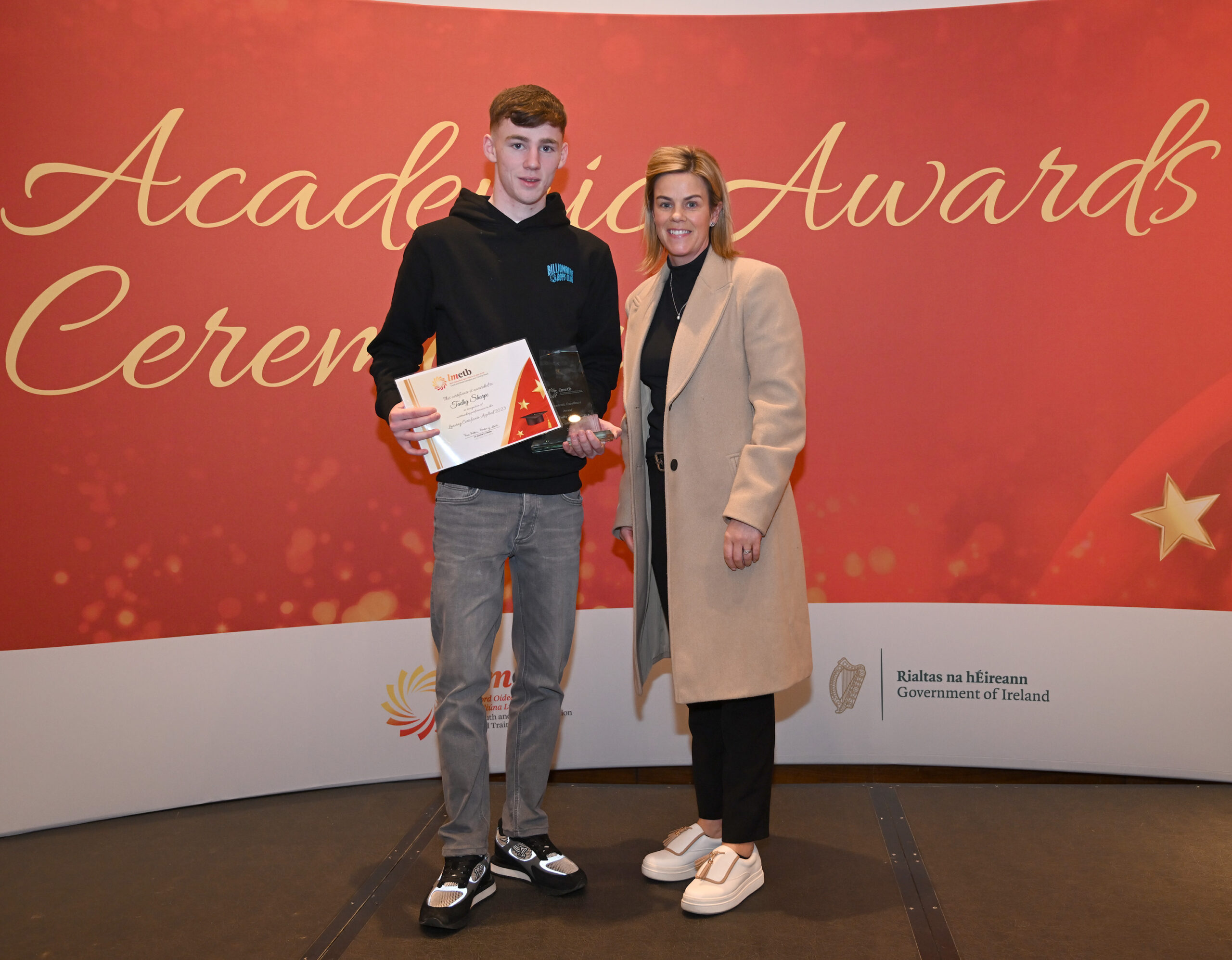 Comperes for the evening were Mr. Cathal Rogers, Deputy Principal, O’ Carolan College, Nobber and Ms. Karen Tobin, Deputy Principal, Beaufort College, Navan. Each student was presented with an engraved piece of crystal and a certificate to mark their achievement.