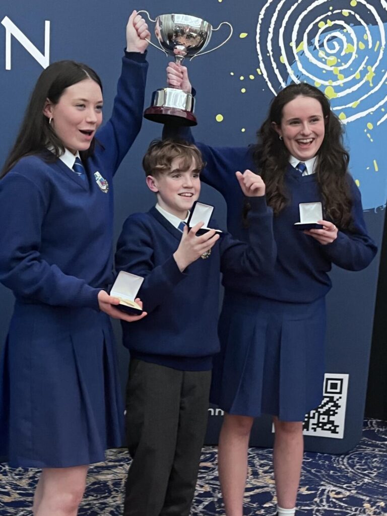 Cormac Winston (1st Year), Luisne Ní Mhonacháin (3rd Year) and Ana Ní Dhubhda (3rd Year) were crowned all-Ireland champions following their comprehensive discussion of the motion ‘The GAA should pull up its’ socks’.