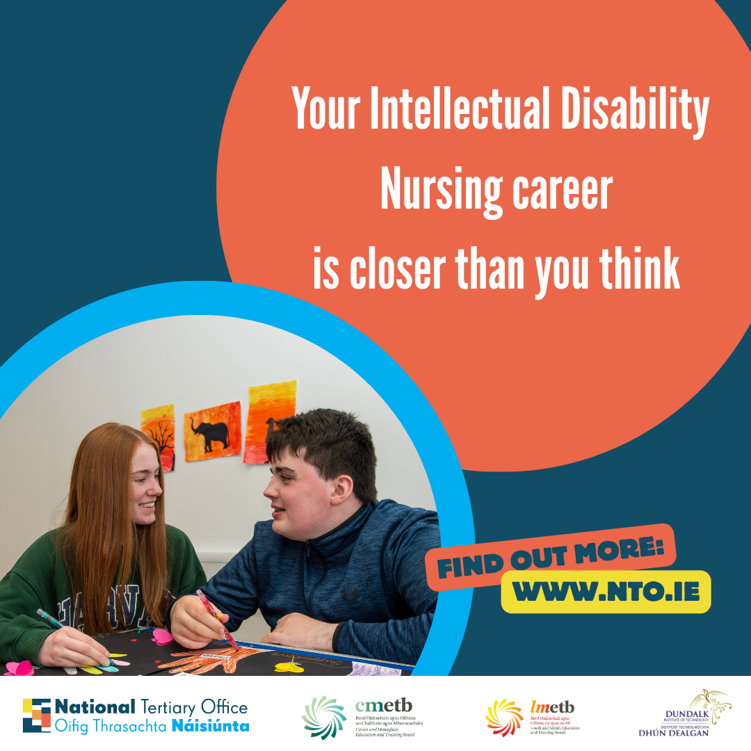 Incorporating the Level 5 Nursing Studies and the BSc (Hons) in Intellectual Disability Nursing, this innovative programme is one that will give the opportunity to students to start their preparation for the Intellectual Disability Nursing degree programme in the FE sector leading to direct access to the third level college. Students will spend the first year of this programme in their local ETB (Education and Training Board) and then progress to Dundalk Institute of Technology to undertake their four-year BSc (Hons) in Intellectual Disability Nursing programme.